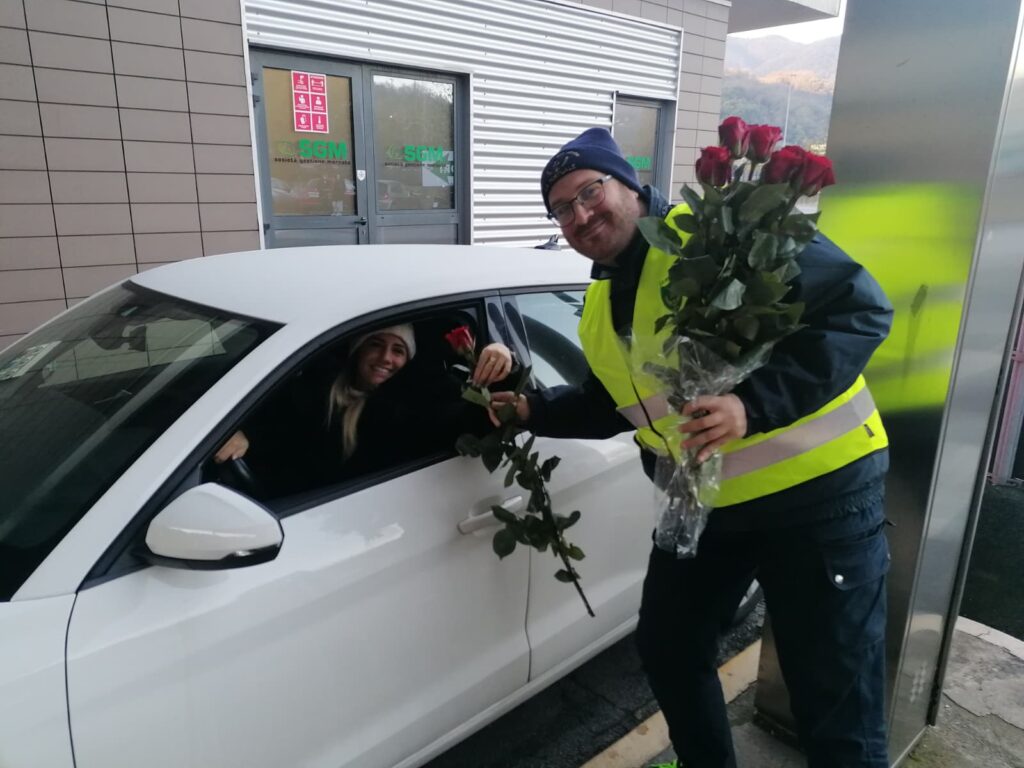 Questa notte il nastro rosso è apparso sull’abete illuminato all’entrata. E questa mattina, proprio all’entrata, abbiamo accolto le donne con una rosa rossa. Contro la violenza sulle donne. Ogni giorno. Ogni notte di lavoro.